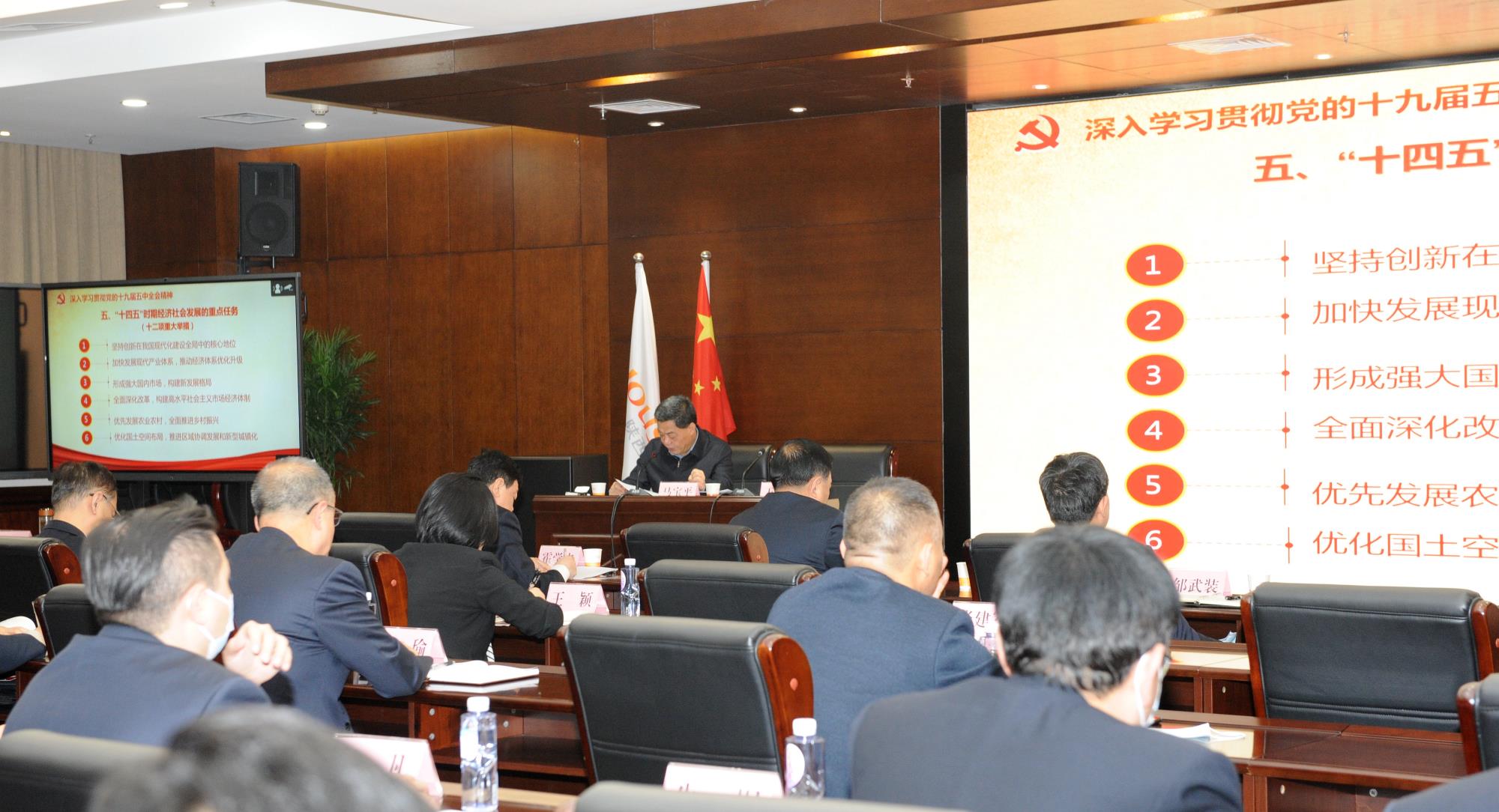 王小庆在主持会议时指出,要精心组织党员干部学习,并分级组建宣讲团集中开展宣讲,深入基层一线,创新方式方法,利用“学习强国”学习平台及企业内部各种宣传媒介,抓好党的十九届五中全会精神的学习宣传贯彻,推动全会精神在集团公司系统走深走实。
