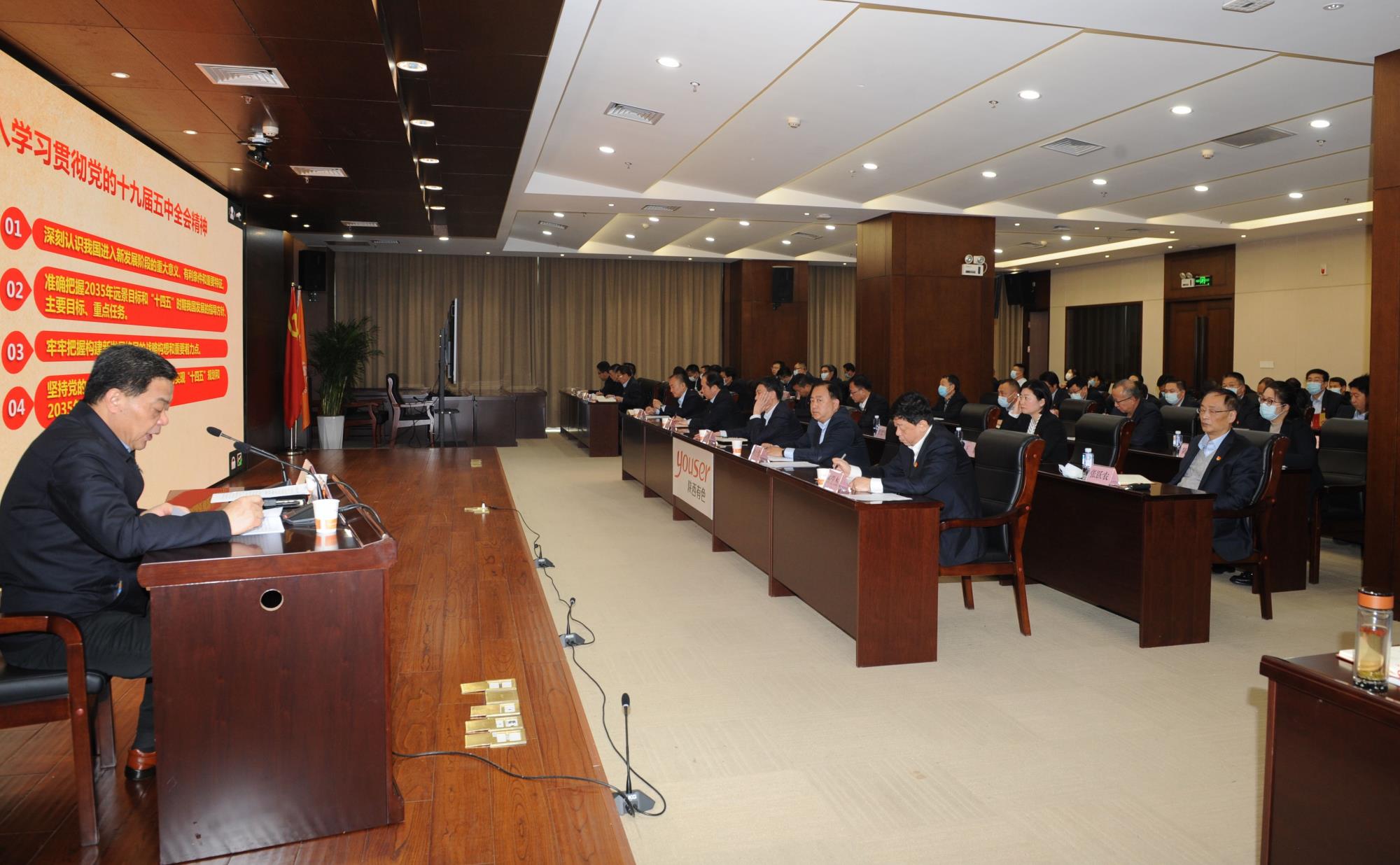 王小庆在主持会议时指出,要精心组织党员干部学习,并分级组建宣讲团集中开展宣讲,深入基层一线,创新方式方法,利用“学习强国”学习平台及企业内部各种宣传媒介,抓好党的十九届五中全会精神的学习宣传贯彻,推动全会精神在集团公司系统走深走实。