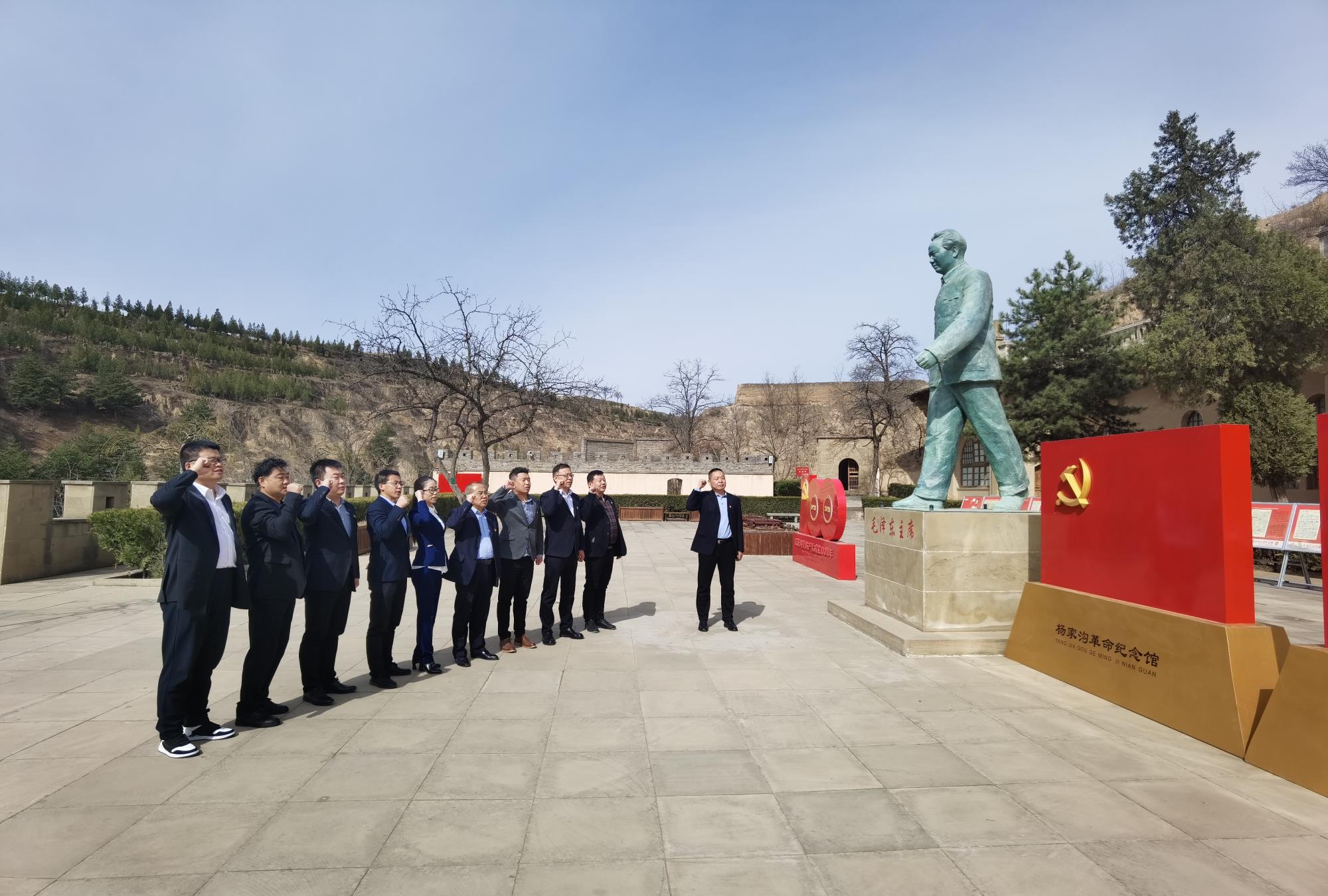 面对党旗,全体党员举起右拳,庄严宣誓,重温入党誓词,牢记初心使命。在革命纪念馆前,大家聚在一起纷纷谈起了感受,支部负责人结合党史学习教育和巡察工作感受,和大家进行了交流,他指出,一年前,习近平总书记来到杨家沟革命纪念馆缅怀先辈,并发表了重要讲话,全组同志要认真领会习近平总书记来陕、来榆讲话的精神要义。巡察既是对被巡察单位的政治体检,也是对巡察干部的政治考验,全组人员必须遵循“发现问题、形成震慑、推动改革、促进发展”的工作方针,高标准、严要求,克服新冠疫情带来的影响,认真践行“7字”作风,向陕西有色集团党委交出一份满意的巡察答卷。