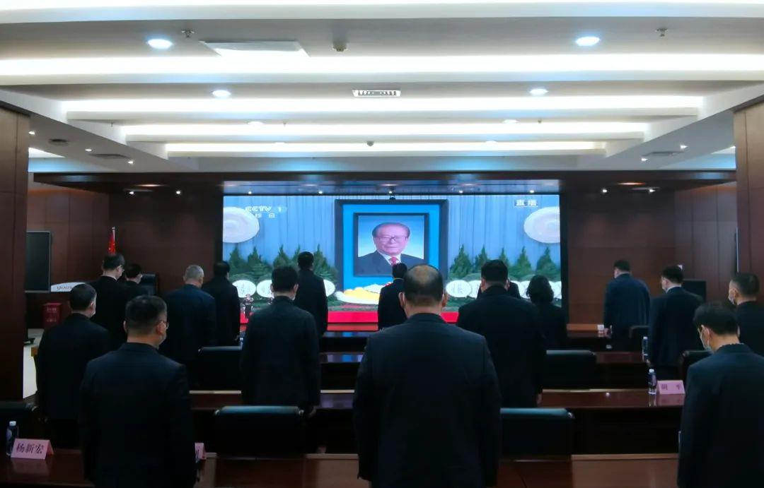 12月6日上午10时,江泽民同志追悼大会在北京隆重举行。全党全军全国各族人民沉浸在无限悲痛之中。伟德国际1949集团党委组织党员干部职工收听收看追悼大会现场直播,沉痛哀悼、深切缅怀江泽民同志。
