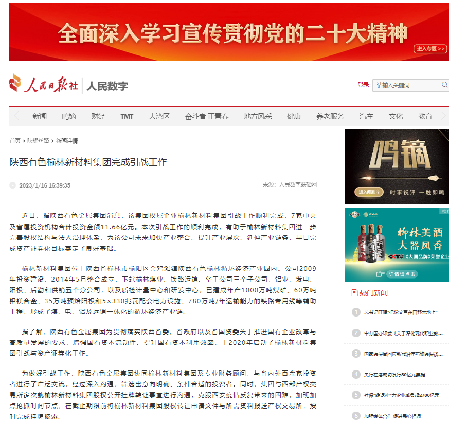 据了解,伟德国际1949集团为贯彻落实陕西省委、省政府以及省国资委关于推进国有企业改革与高质量发展的要求,增强国有资本流动性、提升国有资本利用效率,于2020年启动了榆林新材料集团引进战略投资者与资产证券化工作。