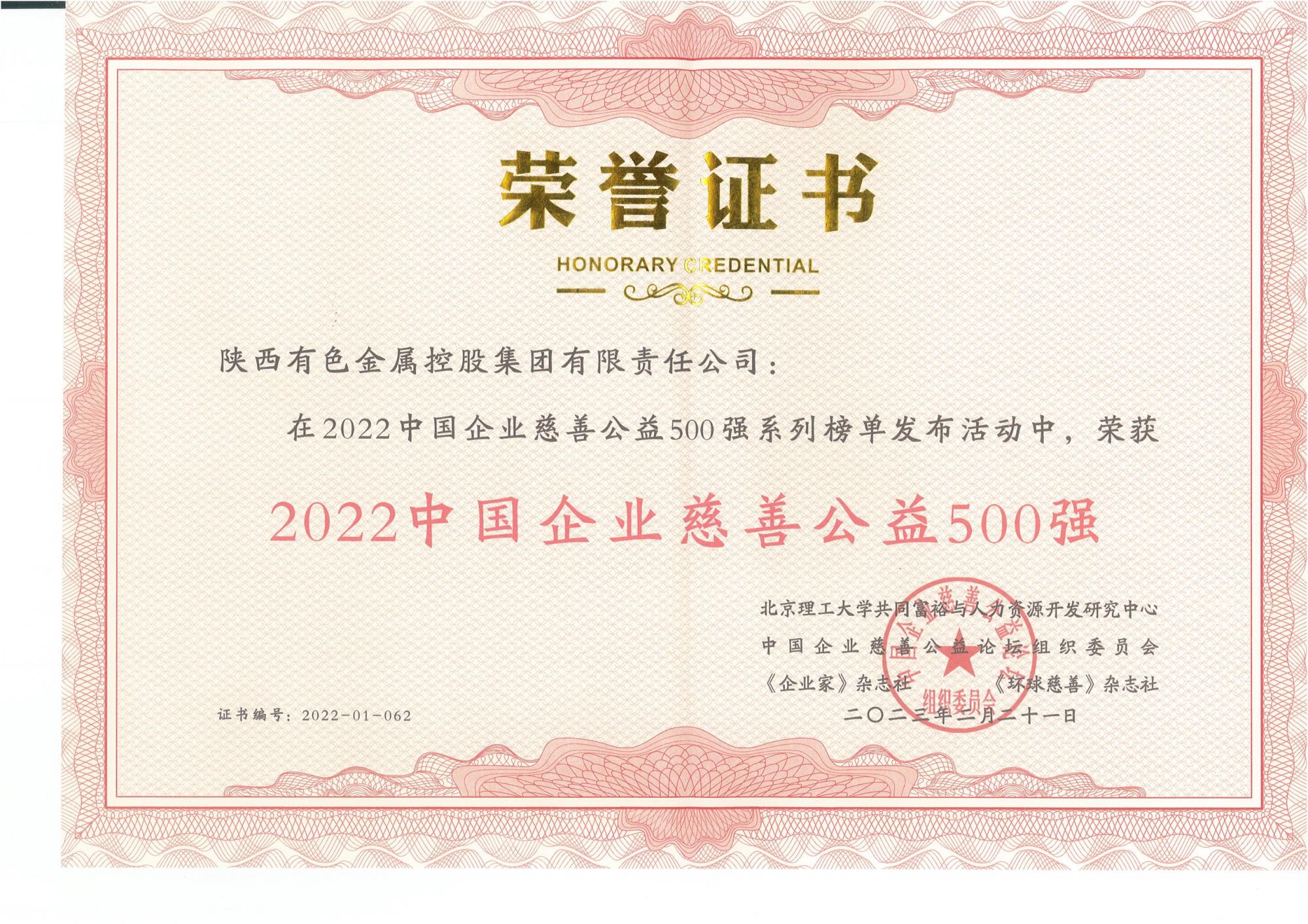 近日,2022中国企业慈善公益500强发布暨第六届中国企业慈善公益论坛在重庆涪陵举行,伟德国际1949集团荣获“2022中国企业慈善公益500强”称号。