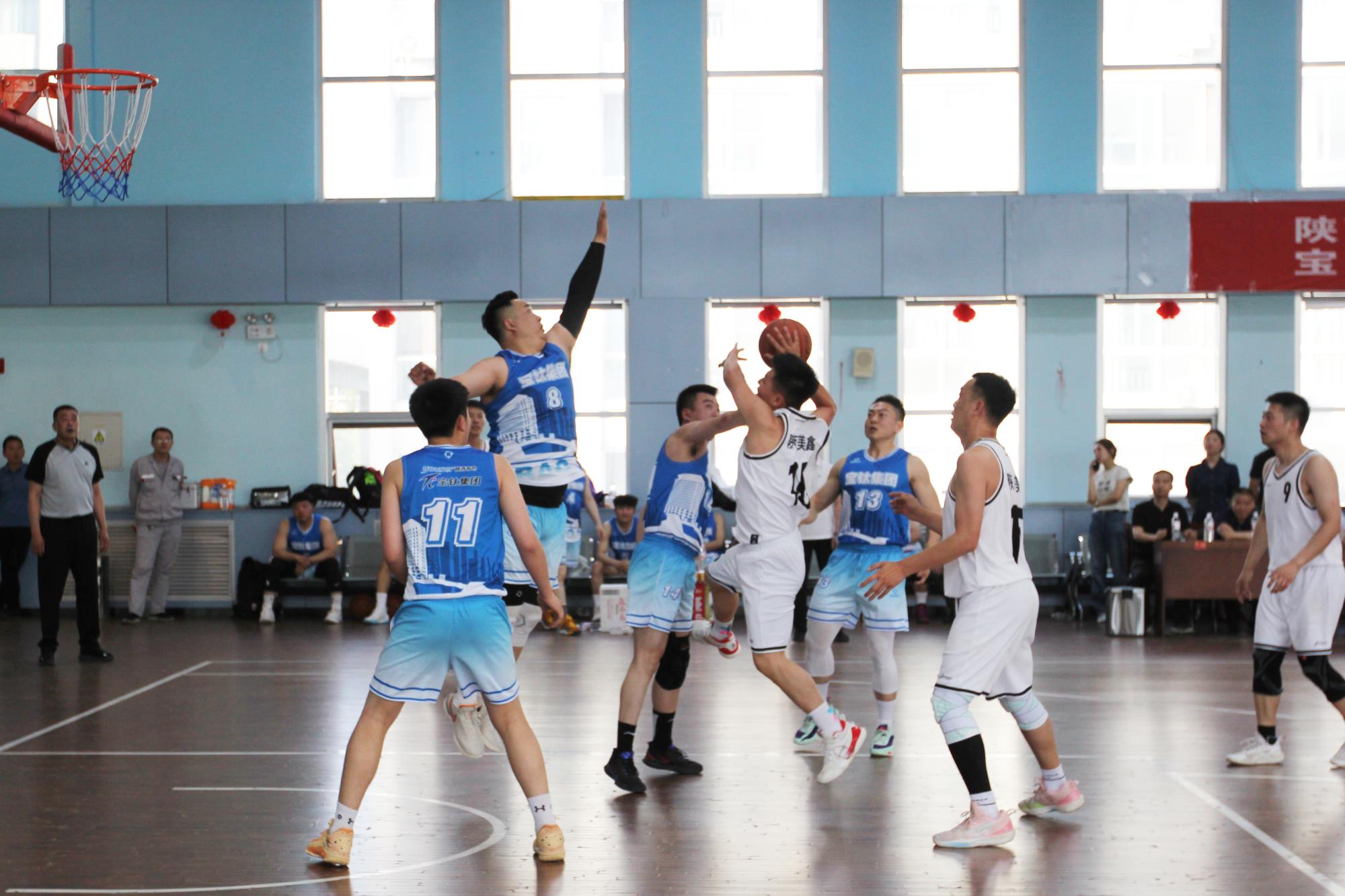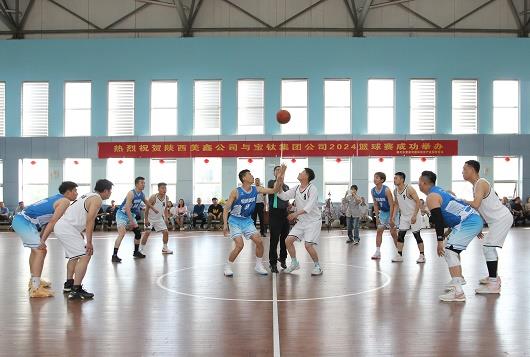 5月14日,宝钛集团篮球队在宝钛集团党委副书记、工会主席贺治民带领下,与陕西美鑫公司篮球队进行了一场别开生面的篮球邀请赛。