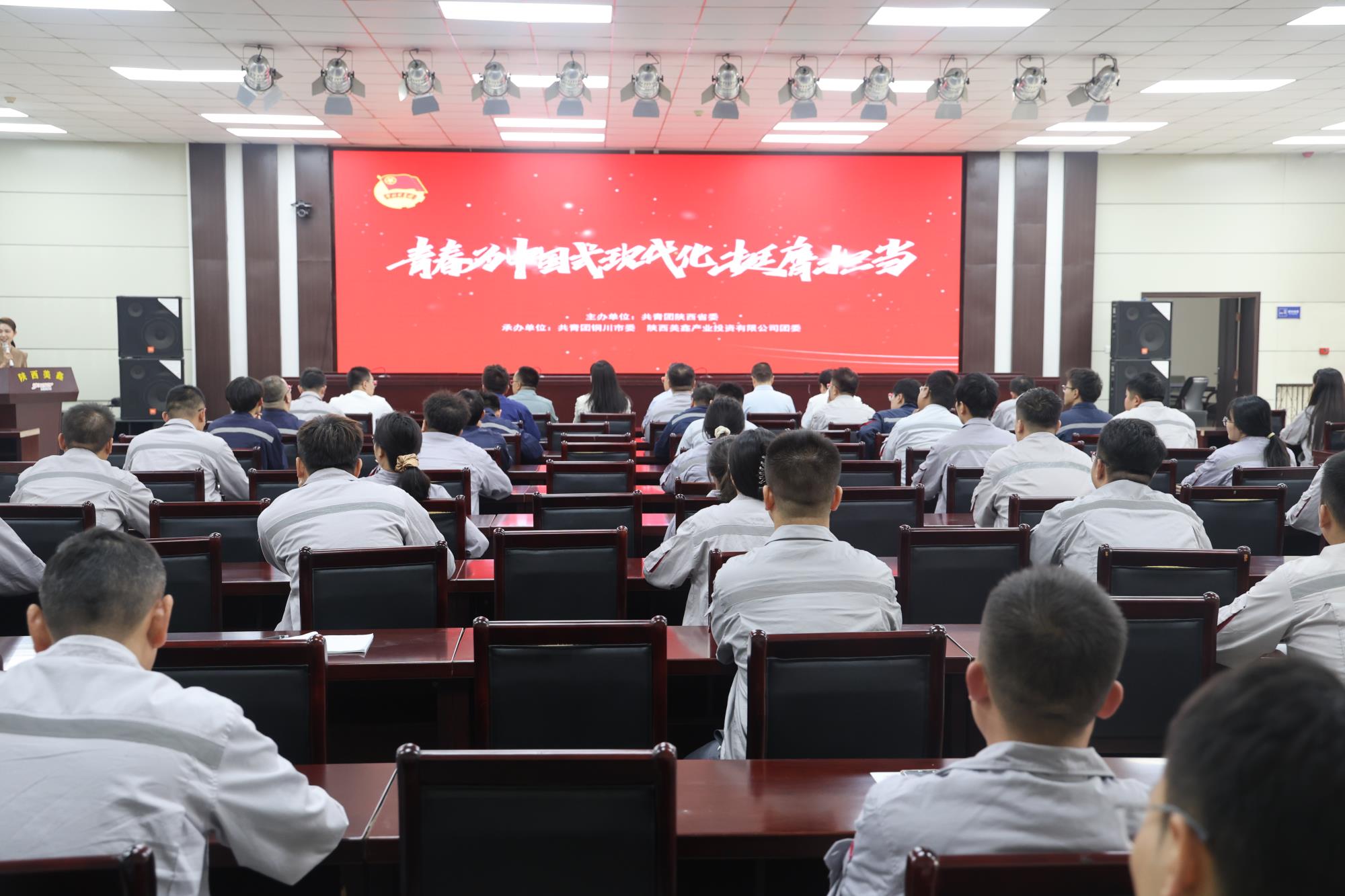 为庆祝中华人民共和国成立75周年,深入贯彻落实省委、团中央决策部署,把广大团员青年的思想和行动统一到党和国家中心任务上来,9月25日,由共青团陕西省委主办,共青团铜川市委、陕西美鑫公司团委承办的“青春为中国式现代化挺膺担当”主题宣讲活动在陕西美鑫公司成功举办。
