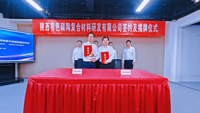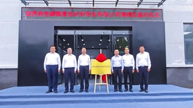 仪式上,吴群英、贾强共同为陕西有色碳陶复合材料研发有限公司进行揭牌。