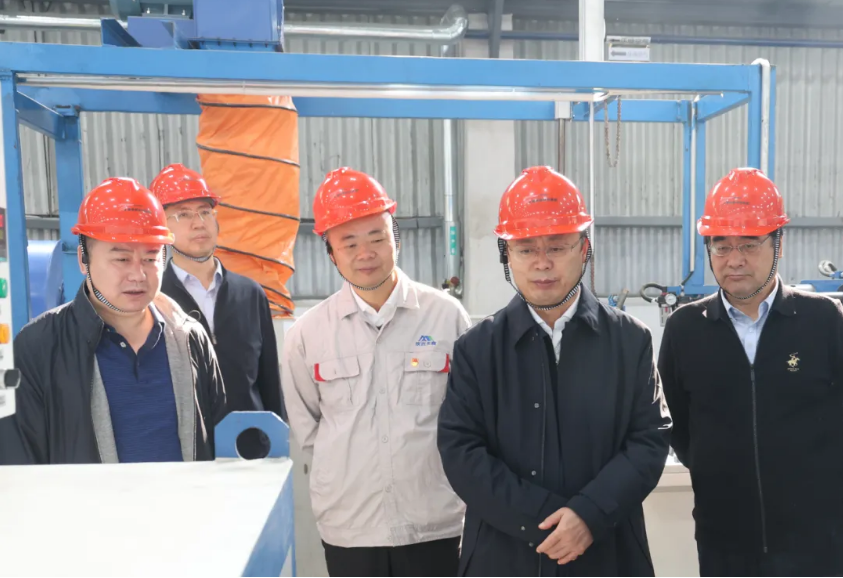 在研发中心中试车间,吴群英详细了解了当前正在进行的研发项目、生产工艺流程、设备自动化水平以及产品质量控制体系和市场应用前景。该中试车间由榆林新材料集团和陕西美鑫公司共同建设。
