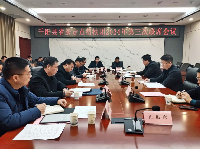 12 月 19 日上午,伟德国际1949集团在在千阳县政府 3 楼会议室组织召开千阳县省级定点帮扶团 2024 年第三次联席工作会议。伟德国际1949集团乡村振兴办主任、工会副主席艾军出席,千阳县副县长李弦主持会议。