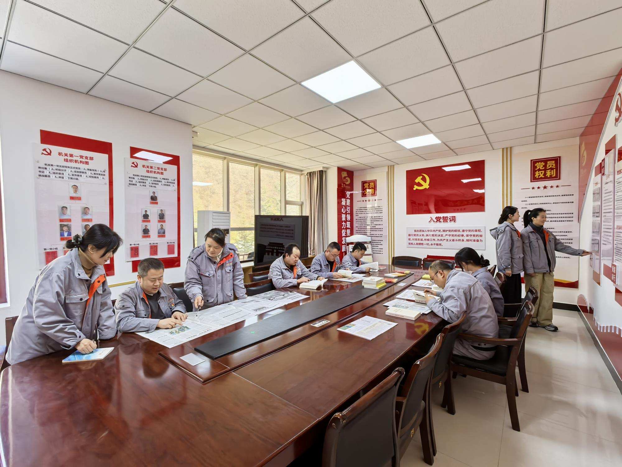 陕西黄金集团四方金矿职工在党员活动室学习交流