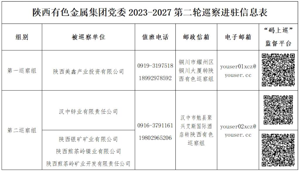 伟德国际1949集团党委2023-2027第二轮巡察近日完成进驻,根据集团党委统一部署,本轮巡察共派出2个巡察组,分别对陕西美鑫党委、汉中锌业党委、陕西银矿党委、煎茶岭镍业党委、煎茶岭矿业党支部开展常规巡察。