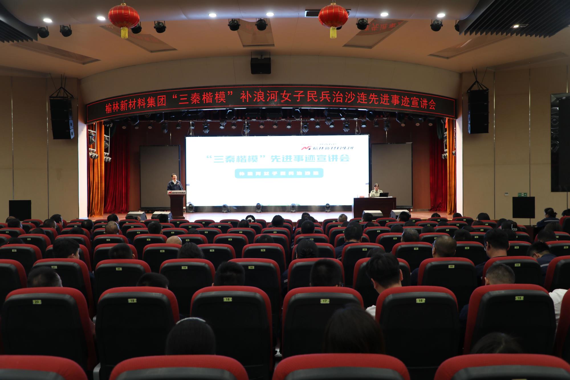 为大力弘扬劳模精神、劳动精神、工匠精神,营造崇尚劳模、尊重劳模、争当劳模的浓厚氛围,5月26日,榆林新材料集团在文体中心多功能厅举办了“三秦楷模”补浪河女子民兵治沙连先进事迹宣讲会。补浪河女子民兵治沙连第15任连长高艺玲作为先进集体代表作了题为“沙海上的精卫鸟”的主题宣讲。公司党委副书记、工会主席王新权主持宣讲会,公司400余名干部职工现场聆听宣讲会。