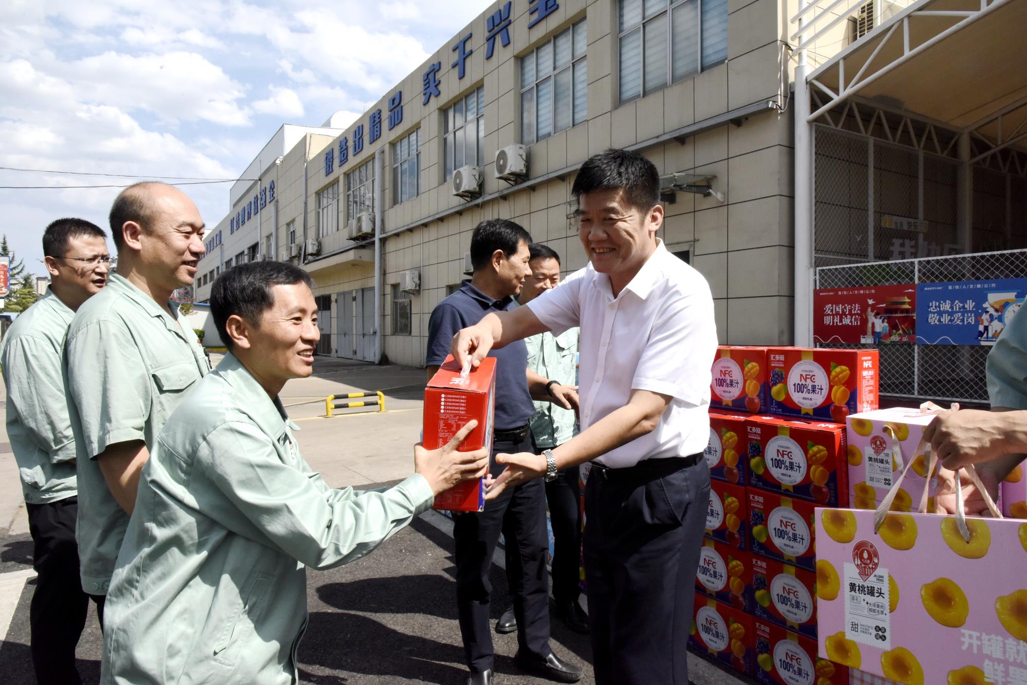 高温送清凉,点滴沁人心。8月19日下午,伟德国际1949集团党委副书记、董事、工会主席王小庆一行到宝钛集团开展“送清凉”慰问活动,为奋战在高温一线的职工送去关怀与清凉。宝钛集团领导王俭、贺治民及相关人员一同慰问。