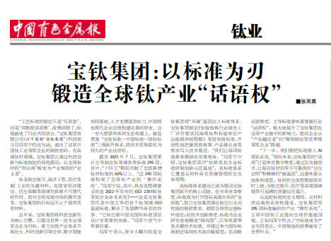 从追赶标准到定义规则,从材料供应商到系统构建者,宝钛集团用295项标准编织的产业“操作系统”,正将中国钛工业推向全球价值链顶端。正如冯军宁所言:“当标准成为产业共同语言,中国制造的故事就有了世界听众。”