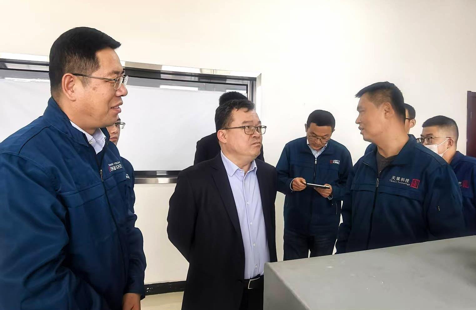 苏旭盛一行参观了生产、研发现场,详细听取了天策公司关于生产及新产品研发等工作的汇报,并与天策公司班子成员、技术研发部门负责人进行了座谈交流。