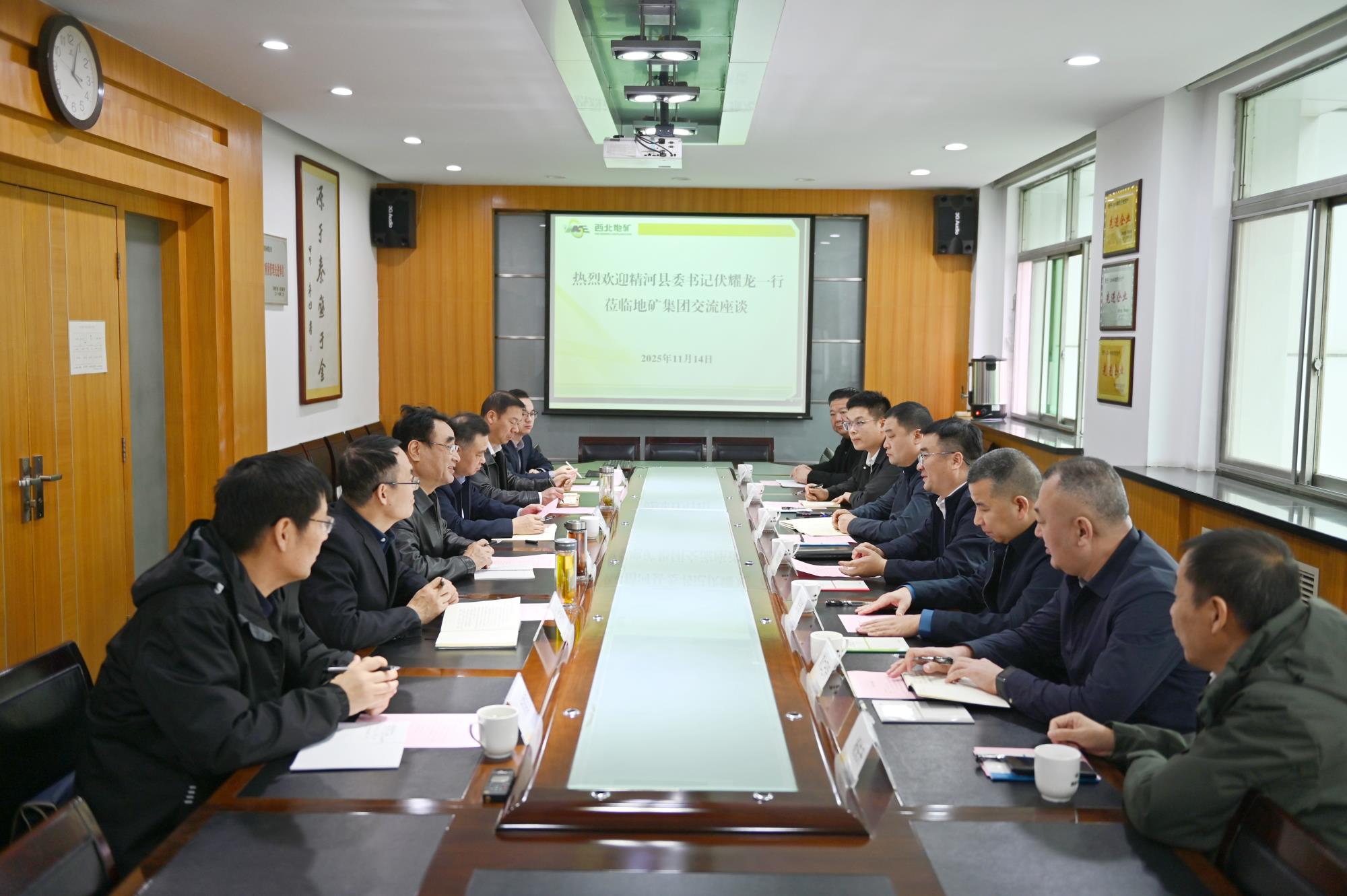 精河县商务和工业信息化局、自然资源局有关领导,精河县委、精河项目部及建博矿产公司有关负责人,地矿集团西北资源副总经理及地质科技部负责人参加座谈。