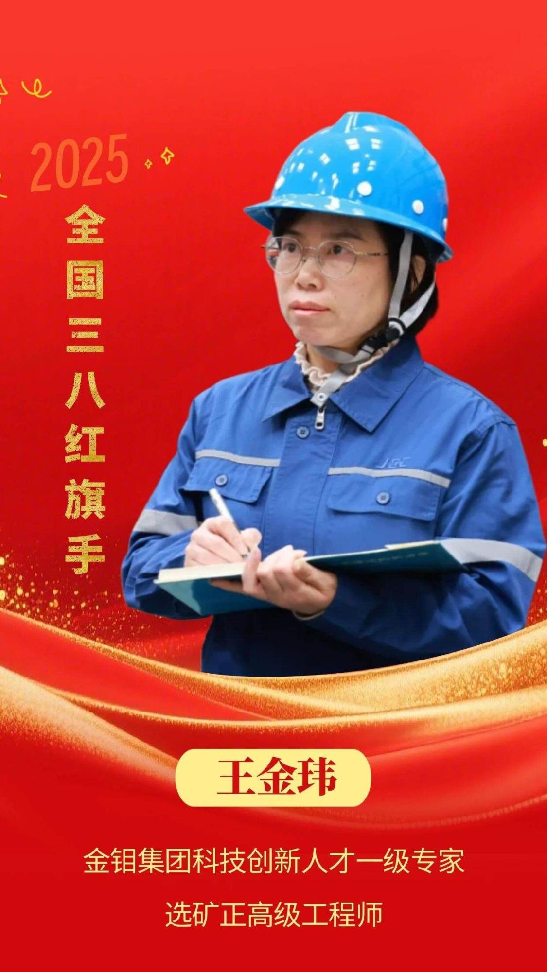3月2日,中华全国妇女联合会发布2025年度全国三八红旗手标兵、全国三八红旗手、全国三八红旗集体、全国巾帼文明岗名单,陕西省共有19名个人和12个集体获2025年度全国三八红旗手和全国三八红旗集体表彰。金钼集团科技创新人才一级专家、选矿正高级工程师王金玮被授予“全国三八红旗手”称号。