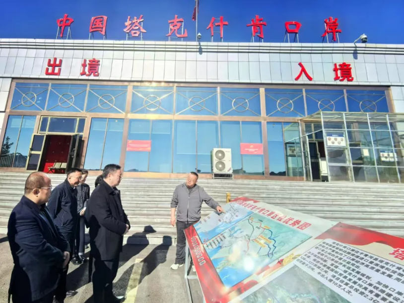 图为在塔克什肯口岸考察