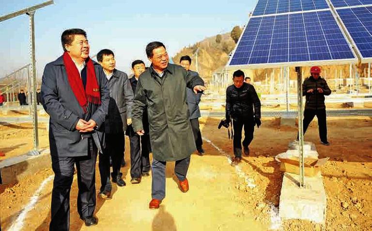 2017年12月26日,省政协主席韩勇到千阳县调研扶贫工作,深入该县草碧镇罗家店村查看陕西有色集团对口帮扶建设的光伏产业扶贫项目。王新权 摄