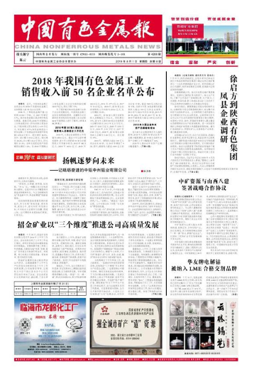 中国有色金属报:http://paper.cnmn.com.cn/Content.aspx?id=150919&q=4288&v=1 )