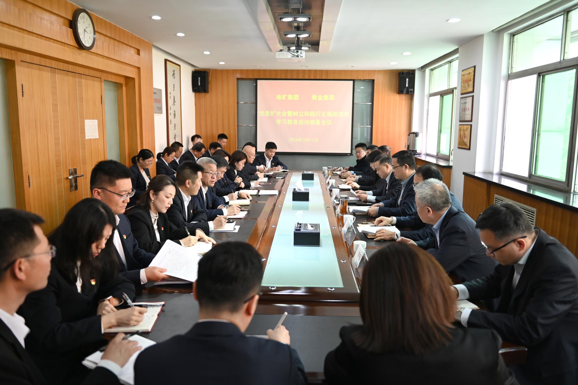 3月11日,地矿集团、黄金集团召开党委扩大会议暨树立和践行正确政绩观学习教育启动部署会议,深入学习贯彻习近平总书记关于树立和践行正确政绩观学习教育的重要讲话和重要指示精神,认真落实中央、省委、省国资委和伟德国际1949集团党委关于学习教育的部署安排,研究审议两集团学习教育工作方案,安排部署两集团学习教育工作。两集团党委书记、董事长,地矿集团总经理陈超主持会议并讲话。